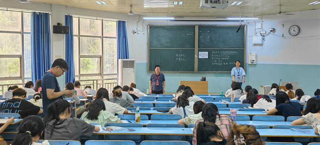 为加强考试的组织管理,扎实推进考风考纪建设,6月19日,公司党政领导班子成员带领教学秘书、辅导员,深入期末考试现场进行巡考。
