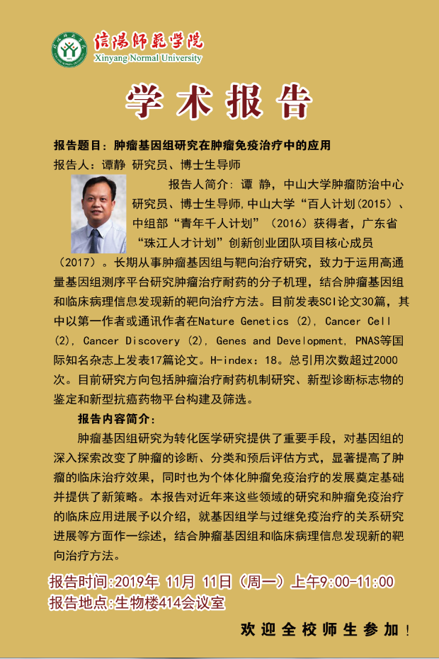 中山大学谭静研究员学术报告预告