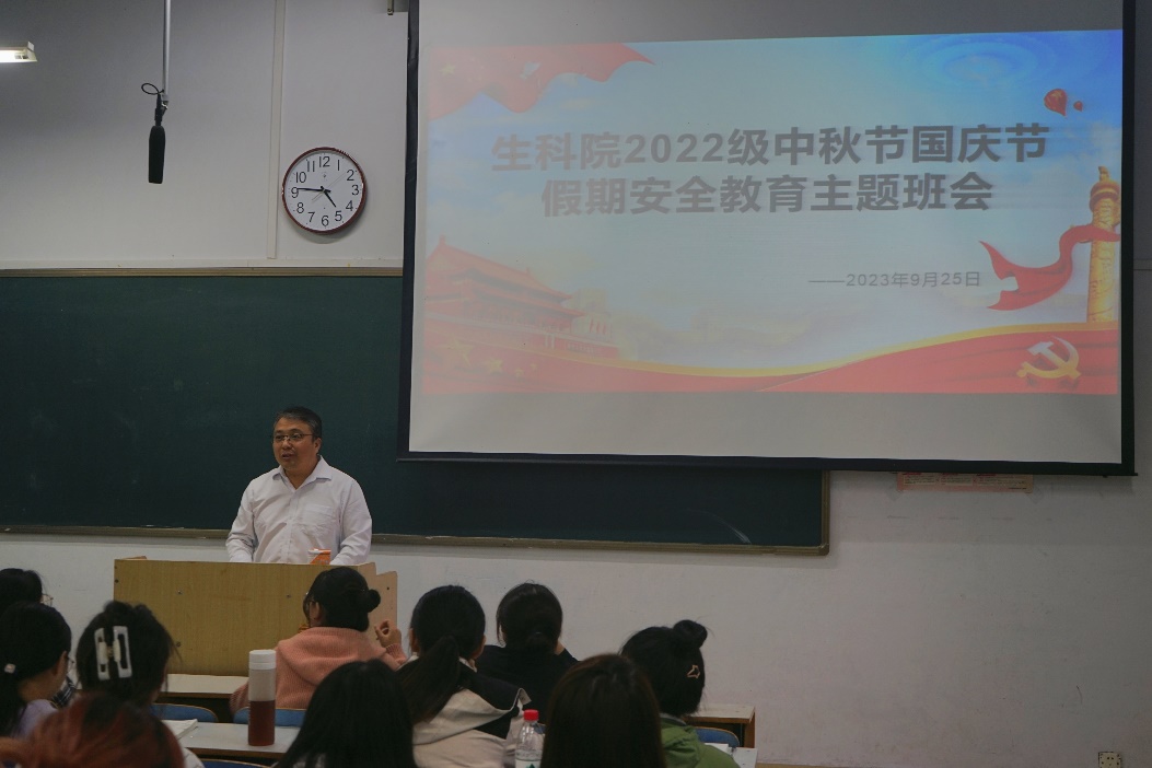 为确保员工在即将到来的中秋节和国庆节假期度过一个安全、愉快的时光,9月25日下午,公司于教九502教室召开2022级中秋节国庆节假期安全教育主题班会,会议由分团委书记熊蕾主持,2022级全体同学参加此次会议,党委副书记荣宪举出席会议。