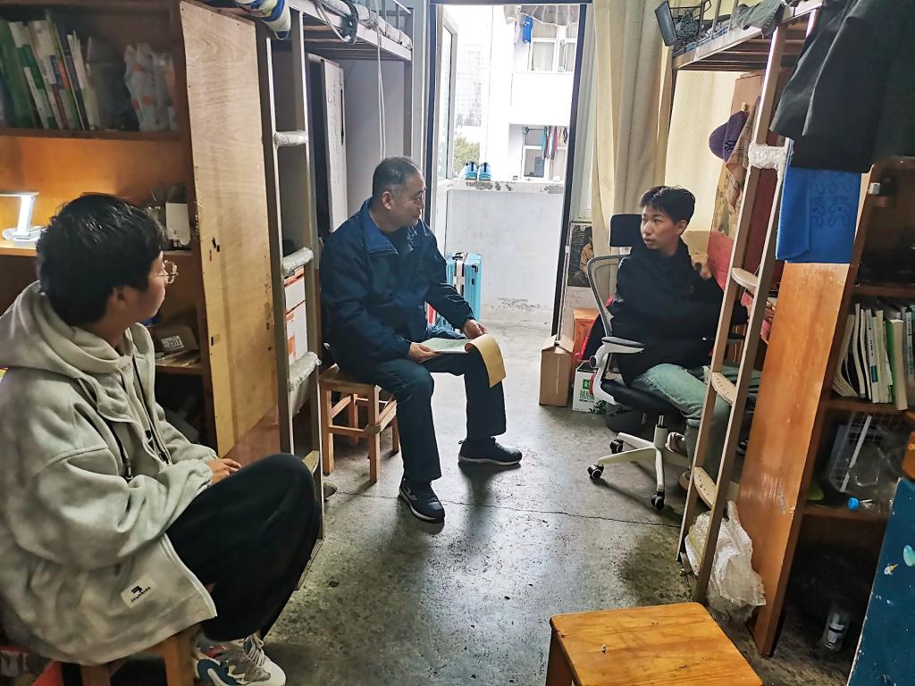 老师们深入每一间宿舍,询问员工的宿舍基础设施是否存在安全隐患,严格排查是否存在违规使用大功率电器的现象,是否有电线私拉乱接的危险行为,以确保宿舍用电安全。关注宿舍整洁状况,查看卫生情况,李刚表示一个整洁的宿舍环境不仅能给人带来舒适的居住体验,更有利于员工们保持良好的身心状态,鼓励同学们合理利用宿舍空间,打造一个安静有序的学习环境,为自主学习创造有利条件。李刚与同学面对面进行交流,了解舍友之间是否相处融洽,是否存在矛盾纠纷,并及时给予调解建议,倡导同学们相互理解、相互包容、相互帮助。李刚指出营造积极向上,健康有益的宿舍氛围也很重要,鼓励同学们保持良好的言行举止,相互尊重,维护宿舍的和谐氛围,共同营造一个温暖的宿舍大家庭。同时,老师们宣传防诈骗知识,提醒同学们警惕各种网络诈骗、电信诈骗等,不要轻信陌生人的信息,避免财产损失,保障自身的财产安全和人身安全。在整个检查过程中,老师们的态度认真负责,每一个细节都详细记录针对发现的问题,及时与员工沟通,并提出切实可行的整改建议。同学们积极配合检查工作,认真听取意见。