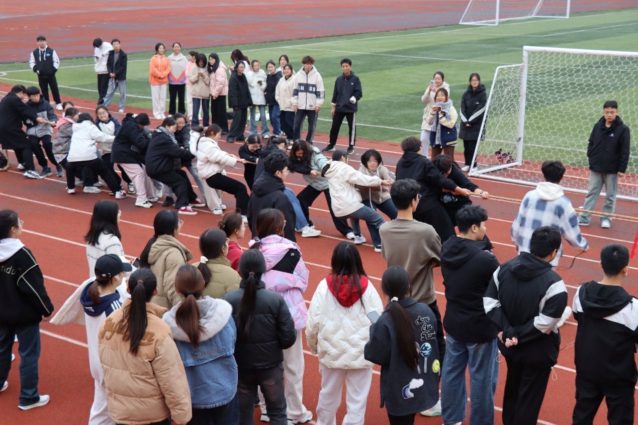 赛场上,参赛队员们个个精神抖擞,斗志昂扬,他们咬紧牙关,双手紧握绳索,拼尽全力向后拉动。绳索在双方之间来回摆动,现场气氛紧张而激烈。经过多轮激烈的角逐,最终,2024级生命科学1班班凭借出色的团队协作和顽强的拼搏精神,成功摘得了桂冠。