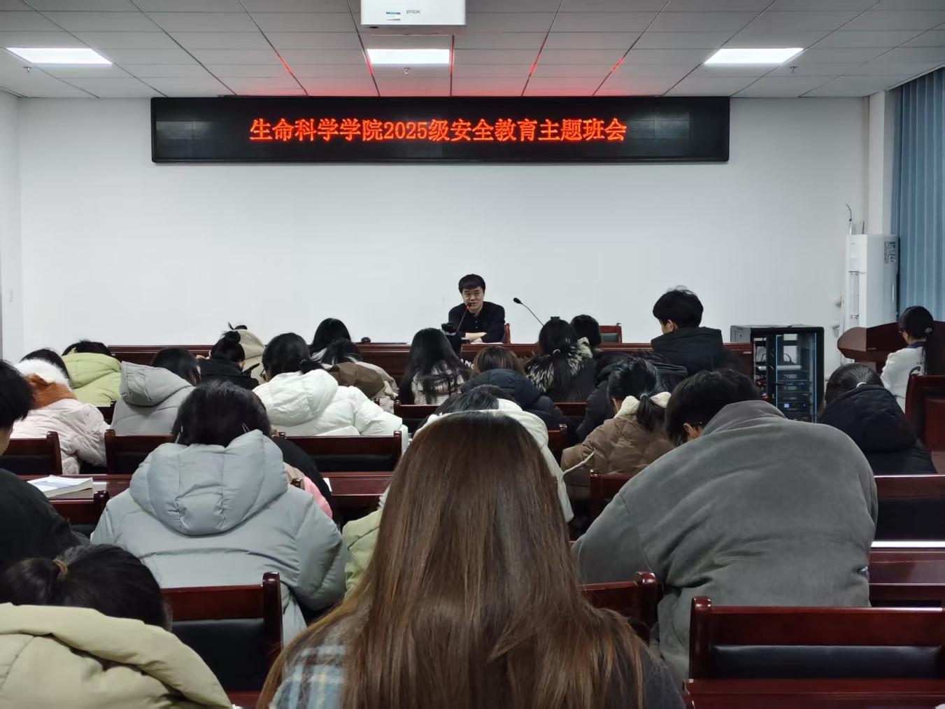 为切实保障同学们元旦假期出行安全与人身安全,筑牢假期安全防线,12月25日晚,面向全体2025级新生的元旦假期安全主题班会在敏思楼418会议室召开,会议由25级专职辅导员张博主持。