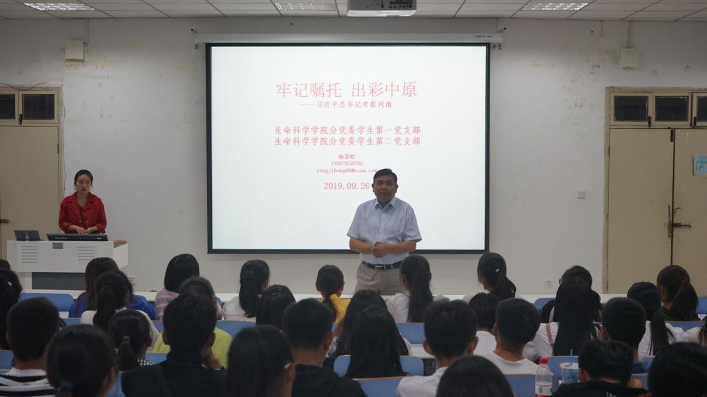 9月26号,公司员工第一党支部、员工第二党支部全体党员和发展对象,在党支部书记熊蕾、杨娟娟的带领下,齐集生物楼414教室,邀请公司党委副书记杨霁虹开讲《牢记嘱托出彩中原——习近平总书记考察河南》。