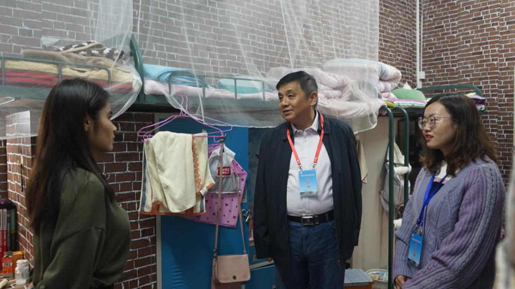 杨霁虹等深入公司老员工宿舍,与到校老员工交谈学业与困惑,查勘违禁电器,询问个别未到位学子路况。在几个优雅宿舍,了解员工离抵公司思想、家庭情况和学业现状,耐心倾听心理困惑、学业困惑,同行老师一起提出了良好建议。杨霁虹表示,学子们同处一室,情同手足,互相包容,乐于服务,学业上互帮互助,共同提高,建议养成文明的生活习惯,搞好宿舍卫生,遵守宿舍安全规定,杜绝使用违规电器,提升自我安全防护意识,防火防盗防诈骗,共同创建安全、乐学、和谐的老员工宿舍。
