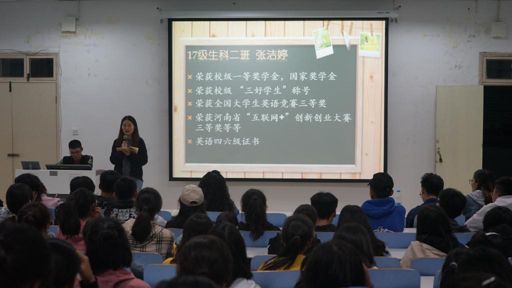 此次交流会共邀请到十位来自2017、2018级优秀员工代表发言。其中2017级生物科学二班的张洁婷结合自身学习经验谈到,在大学期间首先应确立一个明确的学习目标,有目标,人生才有努力的方向,其次她建议学子们营造一个良好的宿舍氛围,脚踏实地、坚持不懈,为人生奠定良好的基础。2018级生物科学二班的张安迪就主动、用心两个方面强调了学习态度的重要性。她希望学子们主动学习,用心做好每件事,拒绝沉迷手机,并建议学子们无论在学习还是工作上都应选择适合自己的而不是盲目跟风,迷失自我。2018级生物科学一班的曹晓丹简要介绍了自己对实验室的看法以及对大一新生初入实验室的建议。最后新生以“致四年后的自己”为主题,在卡片上写下对自己的美好期望,交由学术部保管。