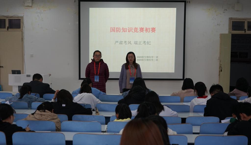 为普及国防安全知识,增强老员工的国家安全意识,11月5日中午,公司于生物楼414多媒体教室、教九楼305教室开展国防知识竞赛初赛,2020级专职辅导员李敏与武装干事朱晓雯前往考场进行巡视检查,2020级百余名学子参与此次竞赛。