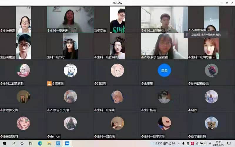 8月26日下午,公司通过腾讯会议举办线上2021届新生班级助理竞选。此次大会由潘高鹏主持,2021级专职辅导员朱晓雯,团委书记熊蕾,团委副书记朱星星,员工会执行主席潘高鹏出席会议。
