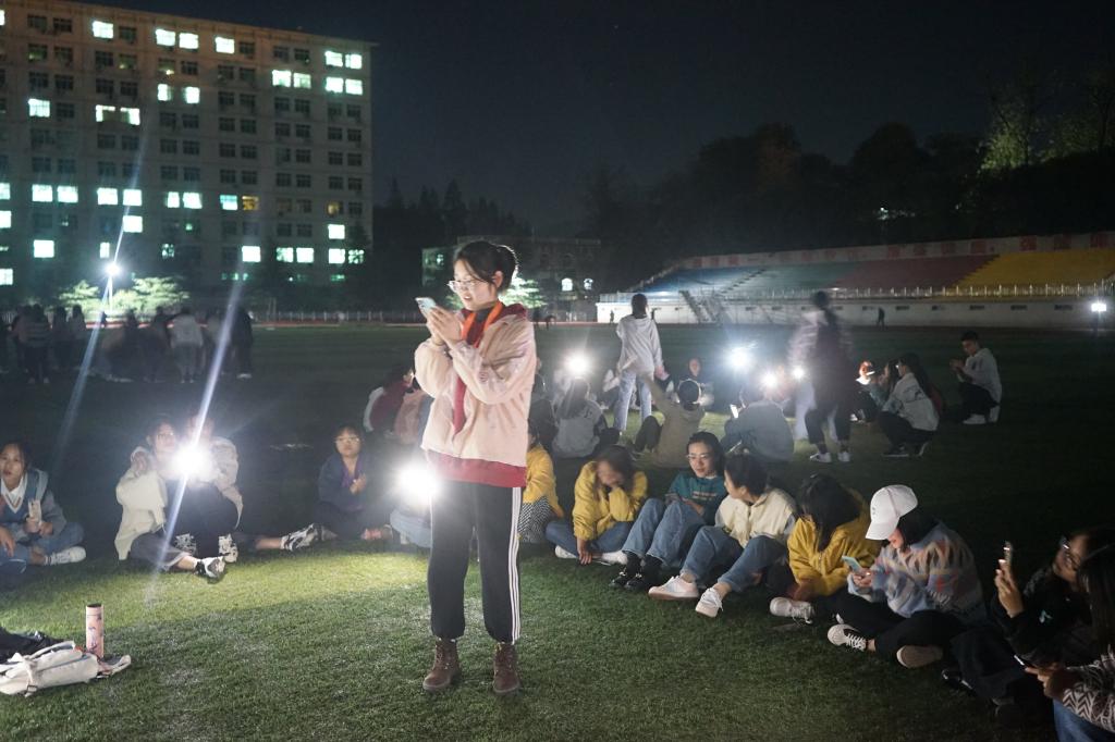 各班班委清点人数后,素质拓展活动正式开始。在老员工心理健康中心成员带领下新生快速熟悉了接下来的游戏规则,并积极投入其中。游戏共分为五个环节,分别为“找零钱”、“松鼠搬家”、“萝卜蹲”、“逢七过”、“解锁”。新生们在“找零钱”游戏中注意力高度集中,在主持者喊出数字后迅速抱团,十分惊险刺激;在“解锁“游戏过程中每个小组的成员以奇特的姿势把手拉在一起,最终解开的小组为获胜者,锻炼了学子们的团队协作与思维能力。此次活动不仅能体验到游戏的欢乐,也给学子们提供了一个展示自己的平台。除了在游戏中淘汰的同学,还有不少多才多艺的学子一展风采。天色渐晚却挡不住他们的热情。各班班委组织自己的班级成员围成圆圈席地而坐,同学们自觉打开手机灯光为表演者呈现最好舞台效果。伴随着热烈的掌声、摆动的灯光、动听的歌曲和优美的舞姿,本次新生素质拓展活动圆满结束。各班在拍照纪念后有序离场。