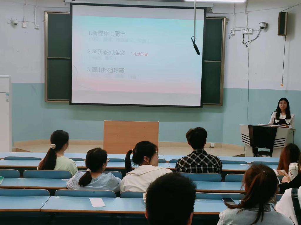4月18日,公司新媒体中心于教九305召开例会,会议由新媒体中心指导老师朱晓雯,新媒体中心主任王丁奕共同主持,新媒体中心全体成员参加。