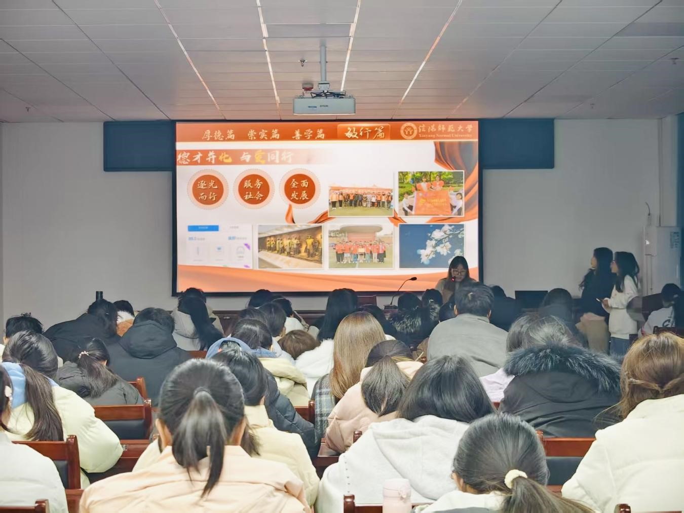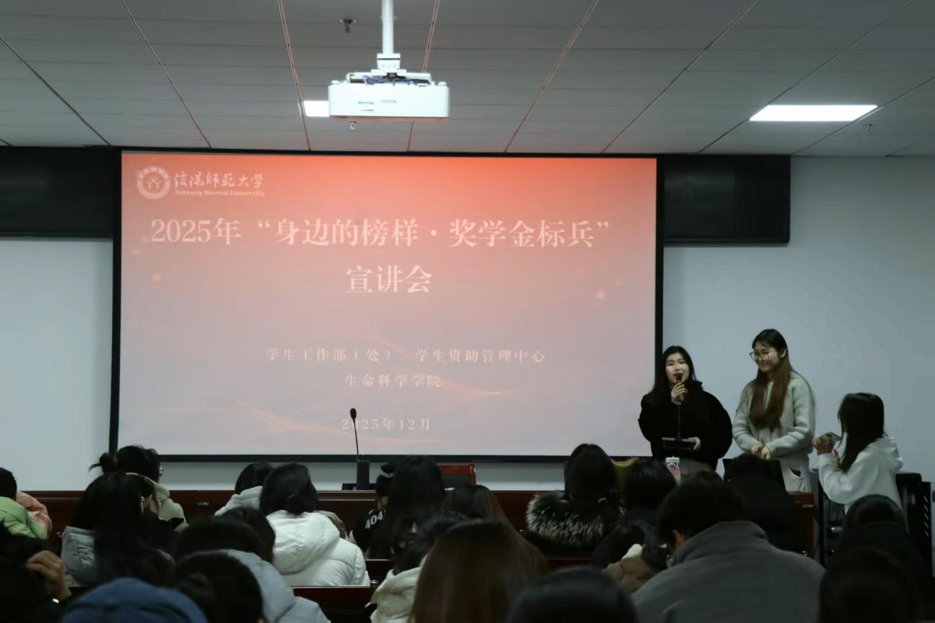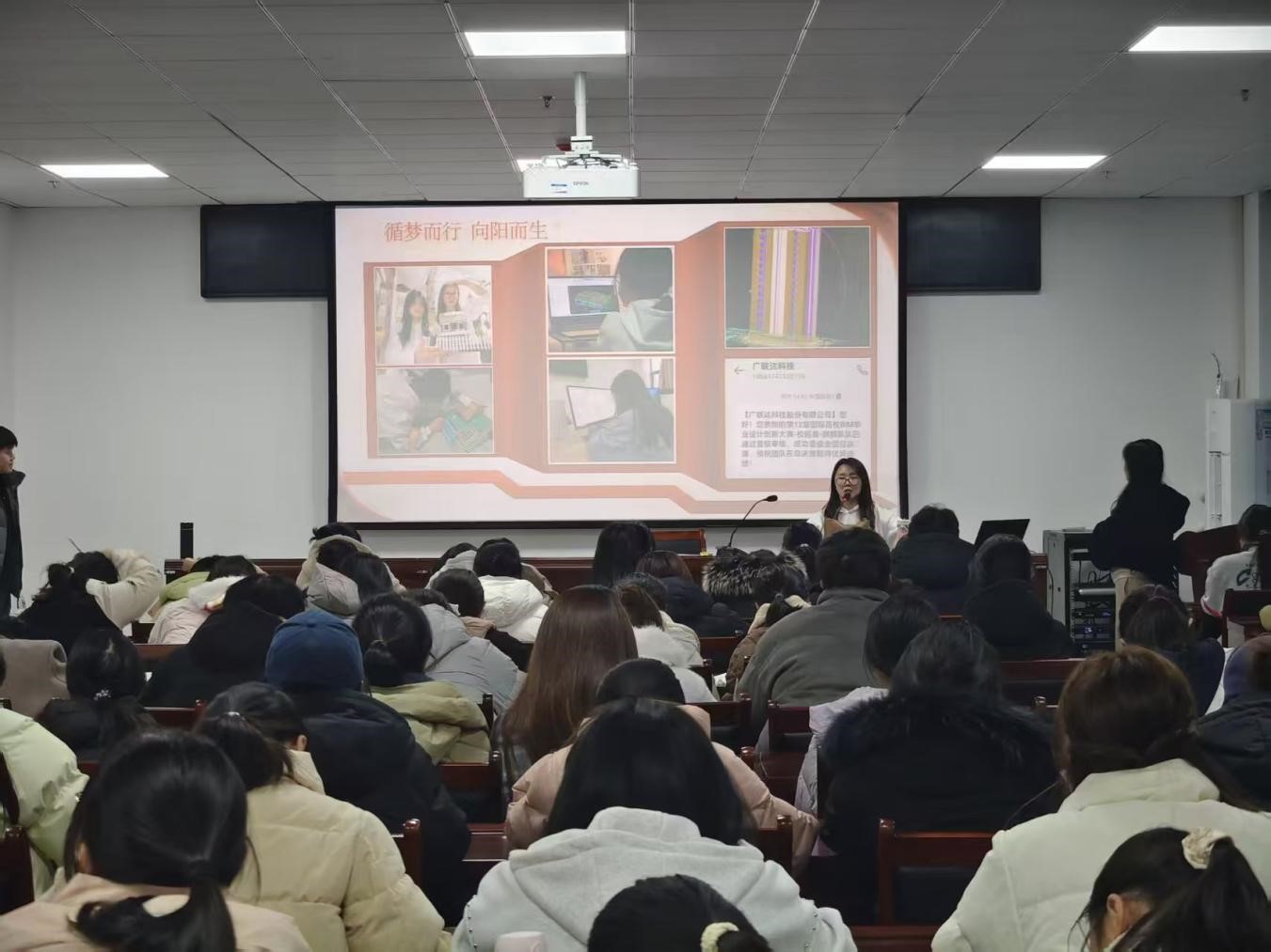 为发挥优秀学子示范引领作用,营造校园勤学争先的优良学风,为广大学子成长成才注入精神力量。12月17日下午六点半,公司于敏思楼A2-418报告厅顺利举办“身边的榜样·奖学金标兵”宣讲会,专职辅导员张博及2024级、2025级百余名员工齐聚现场,宣讲会由公司资助专员张阳阳主持。