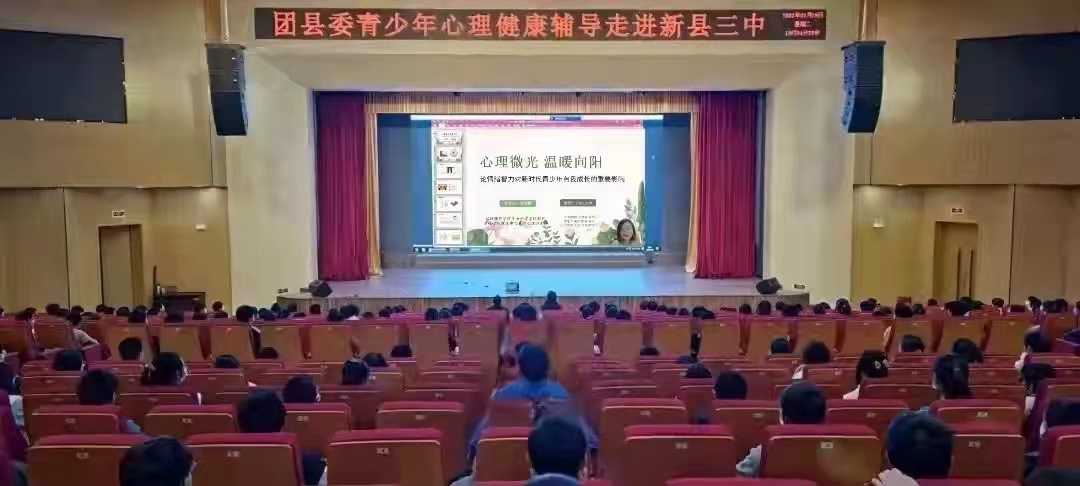 河南新县作为鄂豫皖苏区的首府,不仅是全国著名的革命老区和将军故里,更是红色基因传承圣地。本着反哺革命老区,提升新县青少年心理健康服务水平,高标准高质量落实2022年信阳市重点民生实事项目,把实事办好,把好事办实,3月29日,公司心理咨询师朱晓雯应信阳市新县团县委邀请,为新县第三初级中学员工开展了一场题为“心理微光 温暖向阳”线上心理健康视频直播课。团县委书记程率、县三中董事长胡永红出席此次活动,参加会议的还有团县委、县教育局、县三中其他相关负责同志,报告厅主会场300余名员工及分会场全校52个班级同时收看。