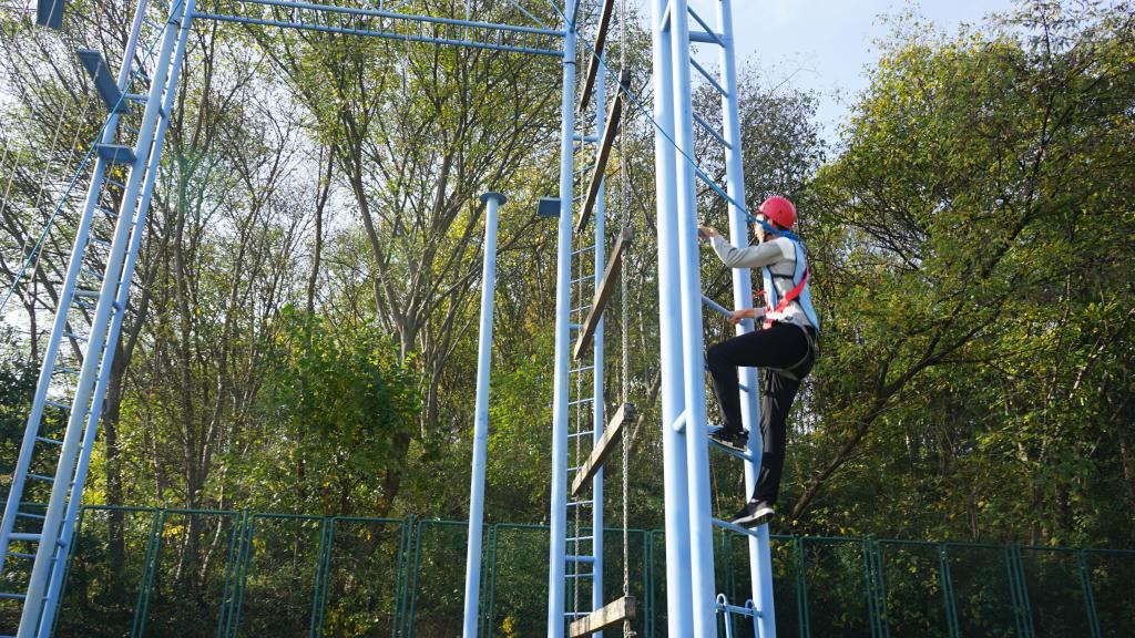 活动现场,公司学子秩序井然地集合站队并完成分组,积极踊跃参与此次素质拓展训练。此次拓展活动共组织安排“极速60秒”、“高空断桥”、“穿越电网”和“毕业墙”四个训练项目,活动生动有趣、精彩纷呈。“极速60秒”项目中,教练员准备30张包含数字信息的图片,参与队员需要在60秒内将图片按照数字顺序排列好,同学们分工明确、分组记忆、完成挑战。“毕业墙”要求所有成员在规定时间内翻越一面光滑的高墙,该项目需要众人合力托举成员依次翻越,有利于提高同学们的安全保护意识和交流合作意识。“高空断桥”项目中,同学们相互鼓励、克服恐惧、战胜自我,在高空中完成跨越。“穿越电网”项目主要考验同学们的处事思维能力,公司学子通过分工、协作,最终完成挑战,极大的培养了队员间团结互助的意识。拓展训练期间,同学们集思广益、团结协作、积极配合、迎难而上,充分展现出当代老员工积极向上、勇于进取的精神风貌。