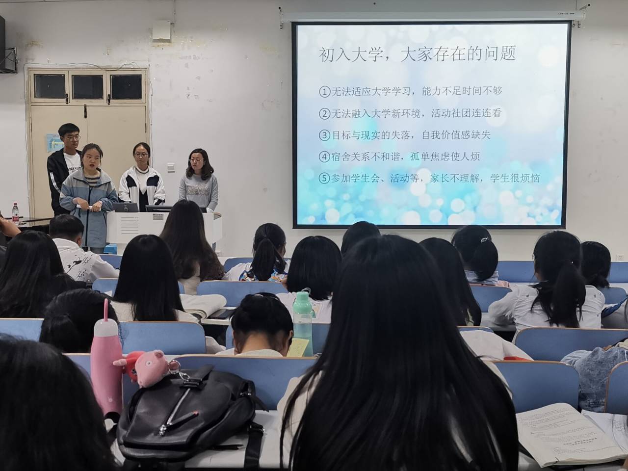 为促进心理健康教育深入人心,提高大一新生对心理健康的认知了解,10月18日至22日,公司2019级各个班级相继于生物楼414多媒体教室、教九楼107等地积极开展心理健康教育主题班会,公司专职辅导员杨娟娟、朱晓雯参加班会并发表讲话。