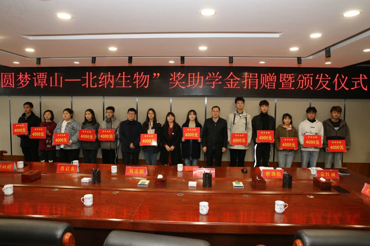 圆梦谭山—北纳生物奖助学金捐赠及颁发仪式圆满结束,此次活动旨在通过校企合作,展开对家庭困难学子的实际帮扶工作,为贫困学子营造更优质的教育环境,激励学子更好的自学、自理、自强。
