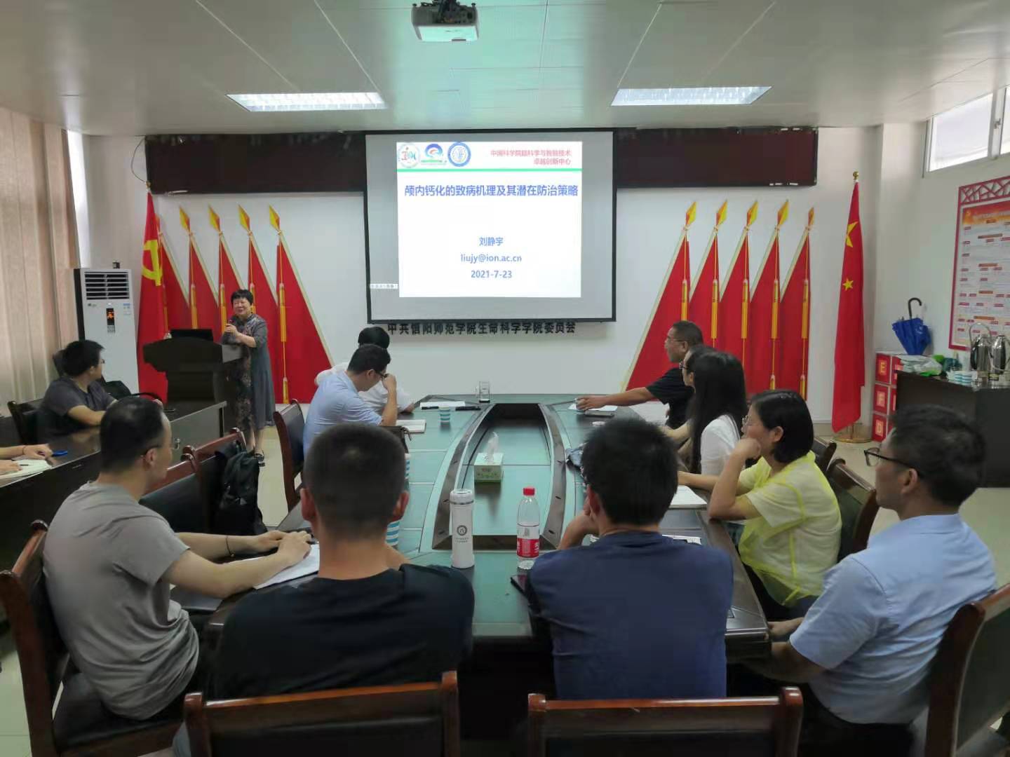 7月23日,中国科公司大学刘静宇研究员应邀来公司讲学,在生物楼412会议室作了题为“颅内钙化的致病机理及其潜在防治策略”的学术报告。bw必威西汉姆联官方网站相关专业教师、在校研究生及本科生聆听了报告,报告会由bw必威西汉姆联官方网站经理饶本强教授主持。