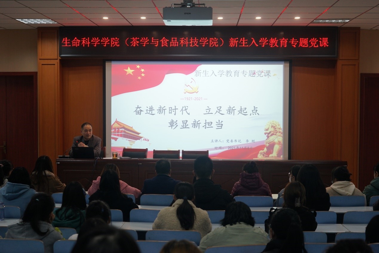 为深入学习贯彻习近平新时代中国特色社会主义思想,扎实推进党史学习教育走深走实,引领广大新生厚植爱党爱国主义情怀,帮助扣好人生“第一粒扣子”,11月10日晚7点,bw必威西汉姆联官方网站(茶学与食品科技公司)党委书记李刚于生科楼414多媒体报告厅开讲“奋进新时代 立足新起点 彰显新担当”专题党课,带领全体辅导员和2021级新生班干部及员工会干事在重温党史故事、感悟信仰力量中学史明理、学史增信、学史崇德、学史力行。会议由公司党委副书记荣宪举主持。