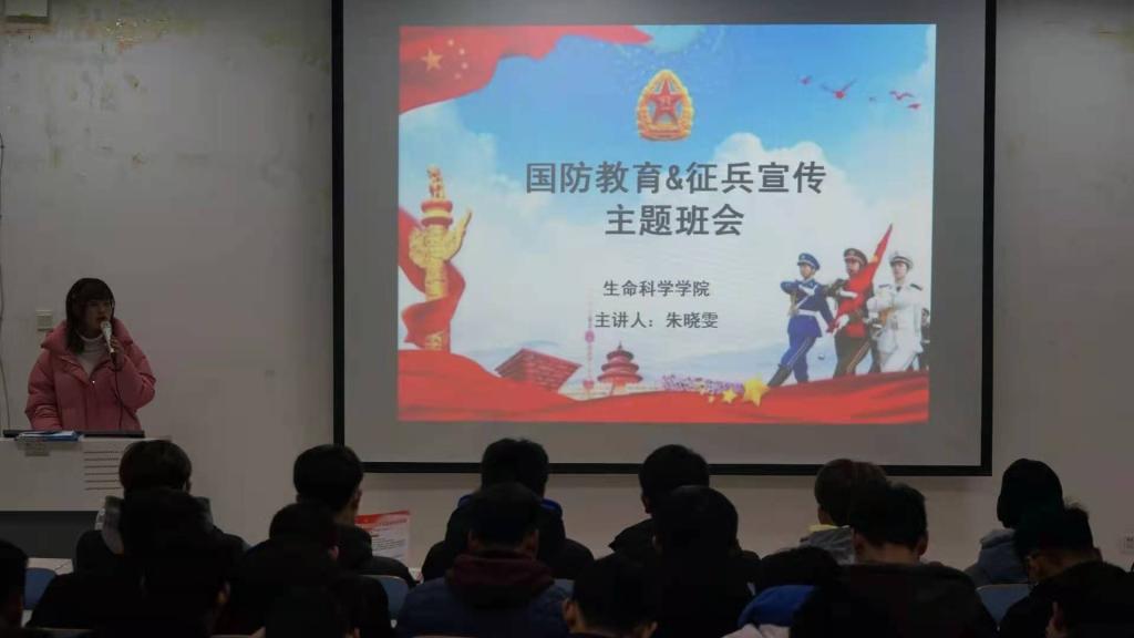 为增强员工的国防意识,培养员工的爱国情怀,1月4日晚6点,公司于生物楼414多媒体教室开展国防教育暨征兵宣传主题班会。班会由公司武装干事朱晓雯主持,公司全体男生参加了此次班会。
