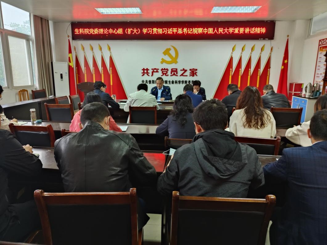 为进一步加强理论武装,切实提高党员干部和广大教职工的政治觉悟和理论水平,增强“四个意识”,坚定“四个自信”,做到“两个维护”, 按照《信阳师范公司党委理论学习中心组学习实施细则》《中共信阳师范公司委员会2022年党委理论学习中心组分专题集体学习安排意见》《信阳师范公司2022年教职工政治理论学习安排意见》等文件要求,5月10日,bw必威西汉姆联官方网站召开党委理论学习中心组(扩大)专题会以及全体教职工学习会,学习研讨习近平总书记视察中国人民大学重要讲话精神。