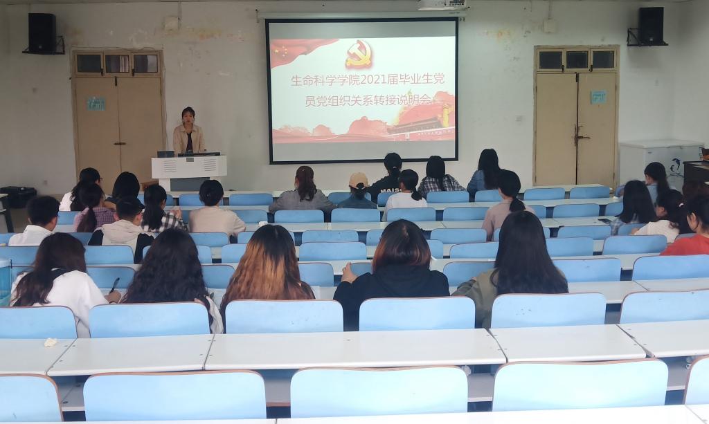 为确保毕业生党员组织关系管理工作有序开展,5月20日中午,团委老师杨娟娟于生科楼414多媒体教室召开公司21届毕业生党员组织关系转移专题会,所有毕业生党员参加。